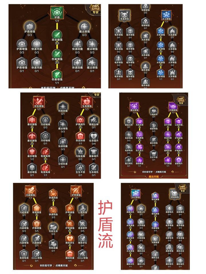 总结:1 攻防俱佳 受伤只扣蓝 7-35无损转万盾 生存不愁2 堆3w吃满30%增伤 7-35无损转万盾 吃满50%增伤3 蓝量多可以无视耗蓝词条 直接吃到增伤词条万盾自带5基础暴击 无脑堆300%以上爆伤 收益很高4 万盾释放技能扣血 用恢复药可以维持平衡 蓝量需要点出暴风雪的站圈回蓝就不缺了5 冰系自带冻结和减速 对小怪和boss都有效 点出一级金乌或者火球给怪附加灼烧 增伤加1