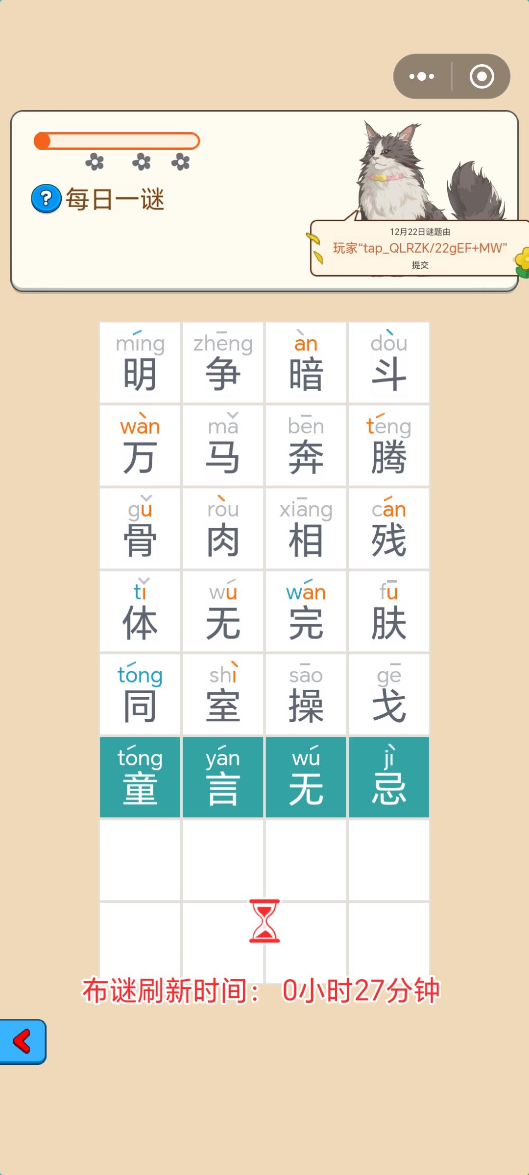 每日一谜成语音调又错了。