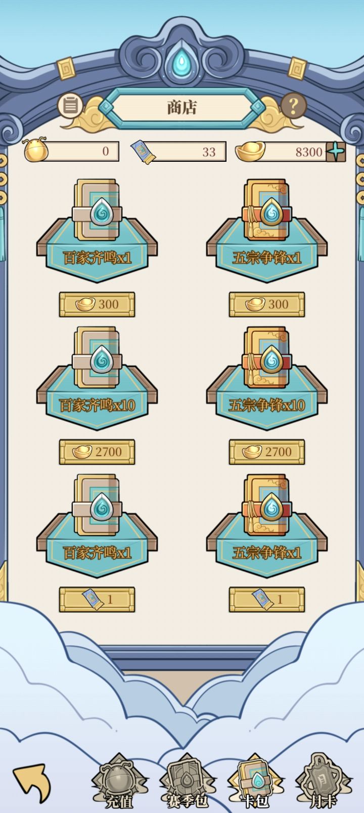 1.[鼓舞]效果可以一直用,比[先机][乘势]性价比高太多,建议改成一次性效果2.扁鹊的[剧毒]稳定一换一,而其他人做不到,建议改成主动撞击时才行,而且打在护甲上不触发剧毒3.[先天功]和[乾坤定气]有啥区别?同样效果同样费用,[乾坤定气]还要先机才行,那效果得加强一点吧4.大部分伤害型武术牌费用太低,2~3费左右,但是伤害基本上溢出,像[千里奇袭]4费10伤害,有几个4费武将有10血?而且
