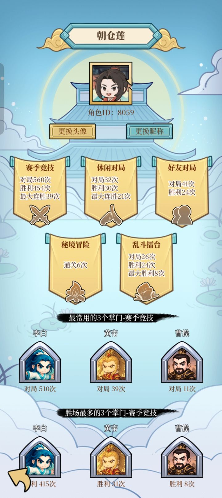问下,今天都下午了,咋还没更新啊,今天还更新不,期待~虽然我5个宗派都会玩一点,但是我独爱玩项羽,可能他的出牌套路更符合我的性格吧,人海战术和大开大合的群攻。我也知道他不算强的,但是就是钟爱,我会将项羽进行到底,估计会有加强的一天的,哈哈~目前个人觉得,不洗勿喷,个人观点而已,竞技场上分,黄帝和李白最强,抽牌流扁鹊次之,项羽第四,曹操个人觉得比项羽还更容易输。你最喜欢哪个宗门,只能投一个。我