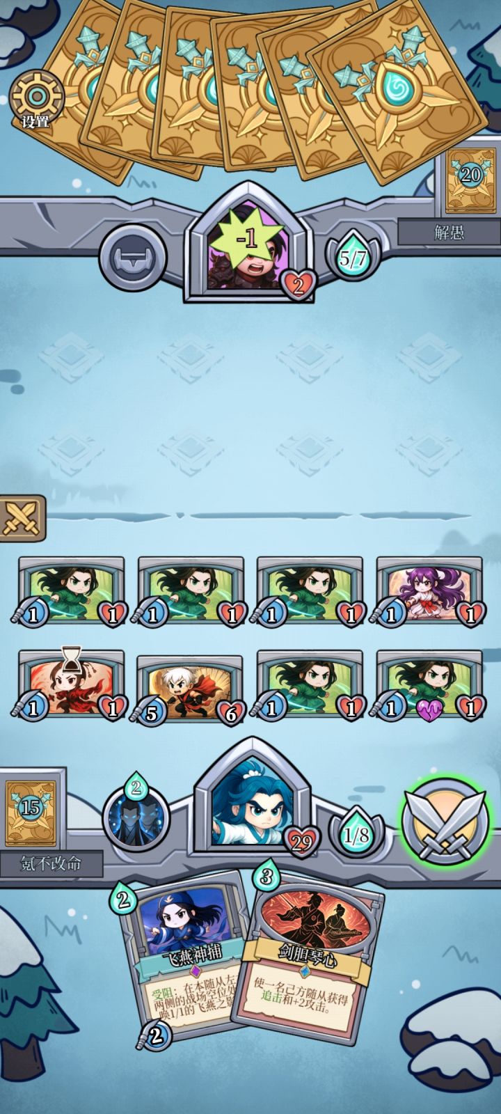 1.[鼓舞]效果可以一直用,比[先机][乘势]性价比高太多,建议改成一次性效果2.扁鹊的[剧毒]稳定一换一,而其他人做不到,建议改成主动撞击时才行,而且打在护甲上不触发剧毒3.[先天功]和[乾坤定气]有啥区别?同样效果同样费用,[乾坤定气]还要先机才行,那效果得加强一点吧4.大部分伤害型武术牌费用太低,2~3费左右,但是伤害基本上溢出,像[千里奇袭]4费10伤害,有几个4费武将有10血?而且