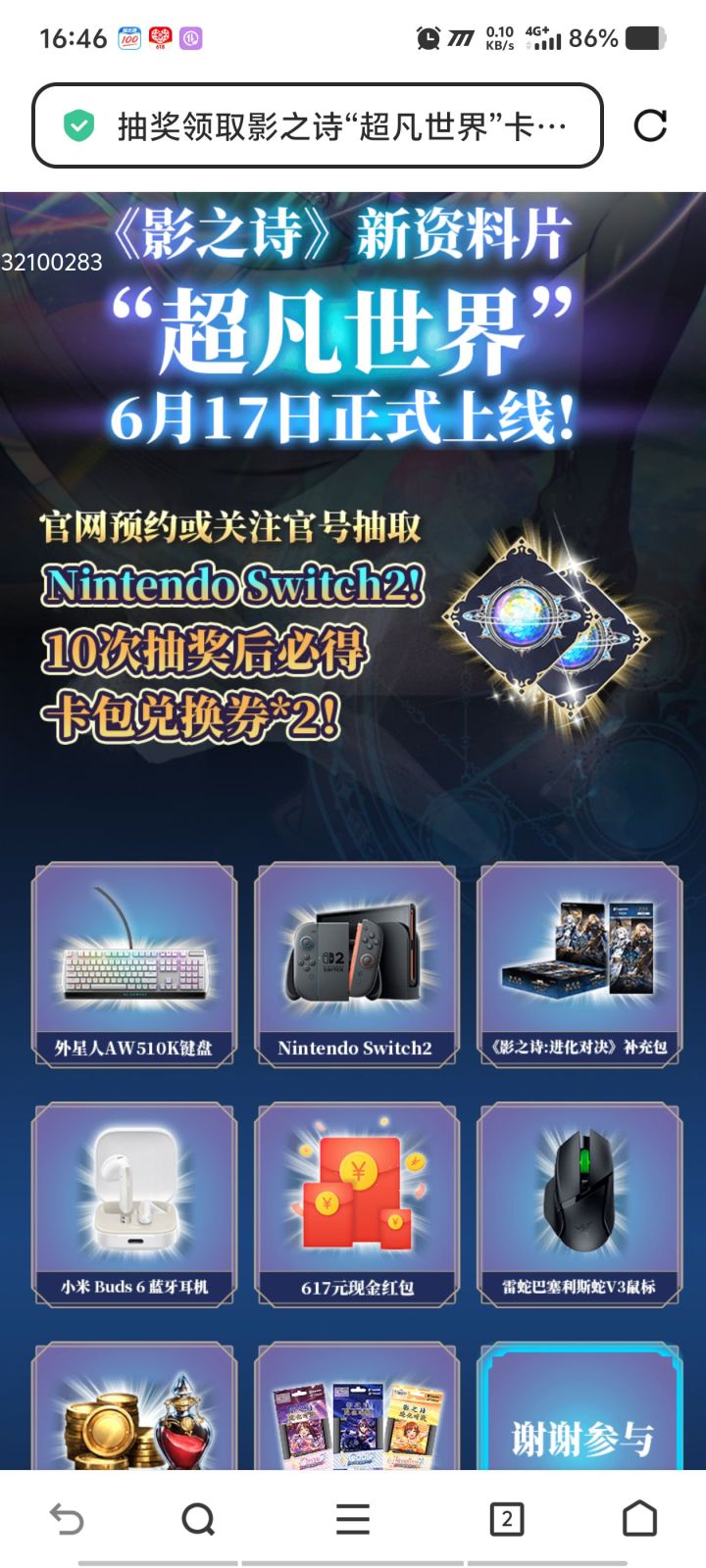 影之诗“超凡世界”6月17日正式上线!抽奖10次必得卡包兑换券!有机会抽取Nintendo Switch2!https://mf.163.com/s/bSaTmCgG