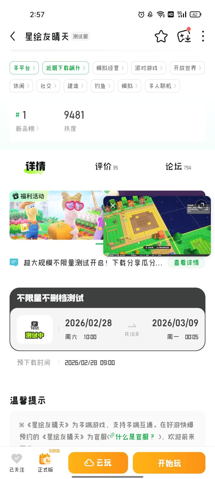 各位星星探险家📡《星绘友晴天》「超大规模测试」今天正式开测啦! 在这个快乐的日子,【星绘直面会】第2期如约而至!阿龙决定带大家沉浸式逛逛我亲手打造的立方星~🛠️✨ 🐥田园区:大片苗圃+热闹鸡舍,谁能拒绝这种拉满的田园氛围感? ⛳运动区:阿龙可是运动达人!高尔夫球场安排上,和居民龙挥杆比拼,友谊赛走起! 🌊 风景区: 星球另一面空荡荡的,和阿龙一起,把这里变成超浪漫的海边网球场! 1️⃣ 先用水砖块
