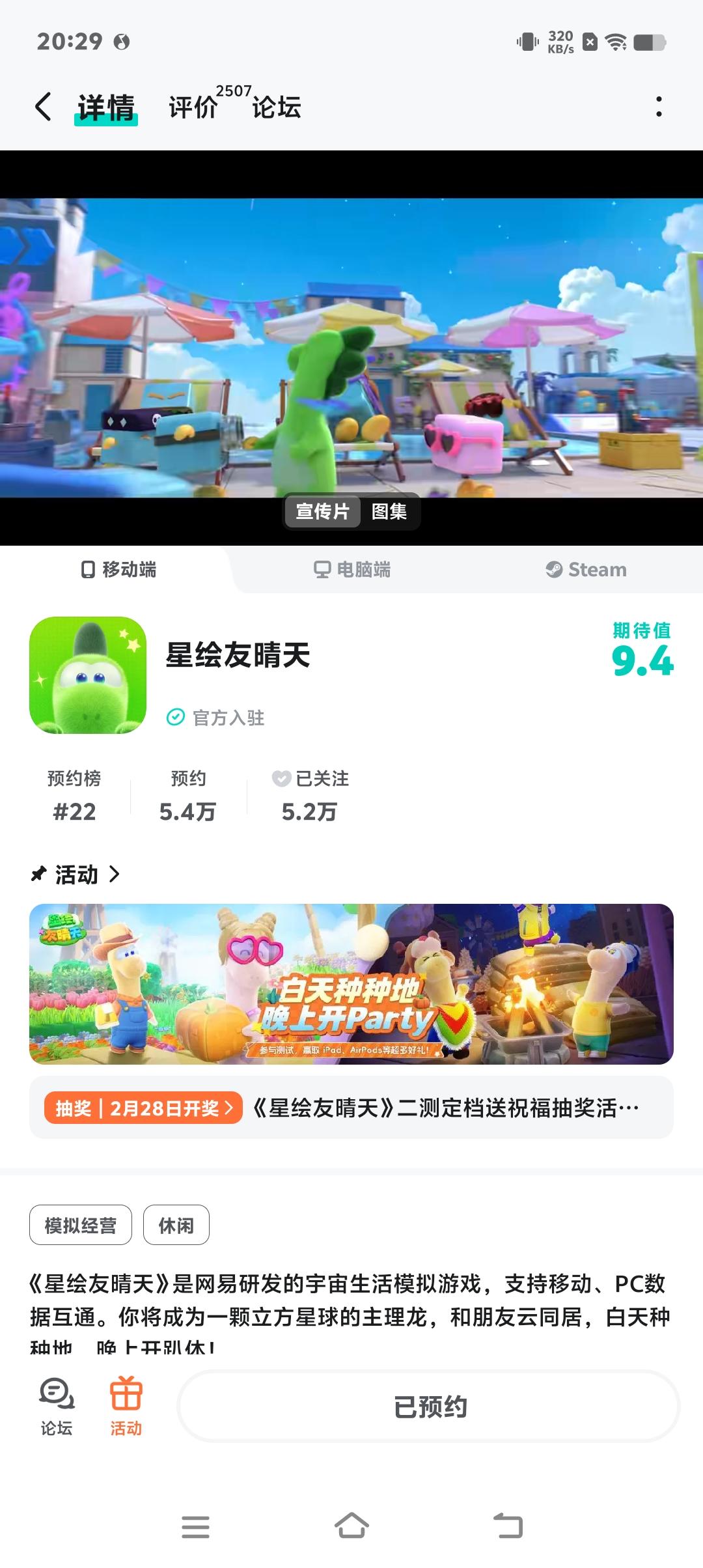 文末含抽奖活动!!定档第①弹:《星绘友晴天》超大规模测试定档2月28日!白天种种地,晚上开趴体,龙在立方星等你!测试平台:iOS · 安卓 · PC测试性质:不限量 · 不删档 · 有计费测试时间:2月28日 - 3月8日在本次测试中,有大量内容更新:开放宇宙的2个全新星系地图、诸多好看外观与家具、更丰富的生活模拟玩法......