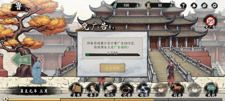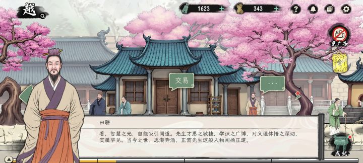 2D水墨画风,界面结构布局合理,UI品质较高。城内的场景类似画卷效果,可以左右切屏查看事件,场景也随之变化。角色造型类似孔孟那种古书人物的感觉,带有一种沧桑感,与论道的题材倒是很符合。