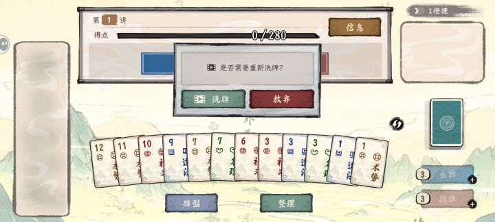 牌组搭配:推荐木之印流。因为只通关一次,所以没有测试其他流派。加了木之印的牌留在手牌中可以让所有分数触发后再乘算,我最高分打出2500W,过关绰绰有余,而且得分稳定不看脸很少翻车,个人感觉比较轮椅。
