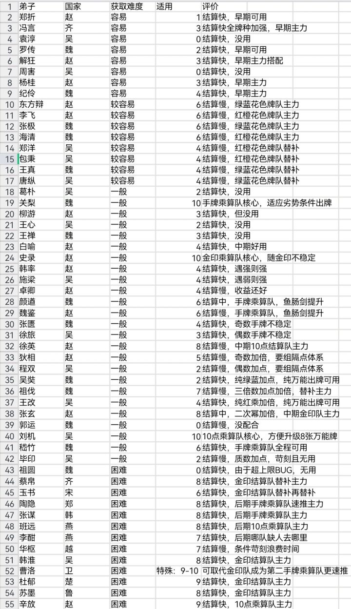 全图鉴,最高得分,三菜刀队镇楼。最强木印、金印,超模最强弟子:史录(金印),最强牌:联章三队建议(12.29增加了0队和4队木印队介绍):0.全部都可以的木印队,弟子随意有木印即可,宝物随意,上场全换牌,留木印在手上,最后打一张,基本所有木印相乘倍数都很高。1.(道法名理队)唐纵、东方辫、王真、张极、(随意有金印即可)宝物:河曲马、月牙剑、曲刃剑、白义(后期)、随候珠(后期)打法全上述