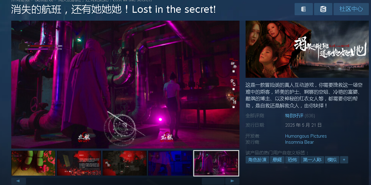 时间到来到了2025年5月,可能是因为“520”的到来,也可能厂家都畏惧今年6月即将发售的《美女,别影响我学习》续作,5月下旬这几天成了历史上国产影游最集中发售的几天。前前后后10多部游戏以《侦探,请守护我的秘密吧!》《时空重构》《消失的航班,还有她她她!》这三部的宣传片做的最吸引我的注意,而这三部里最走偏锋的当属《消失的航班,还有她她她!》。