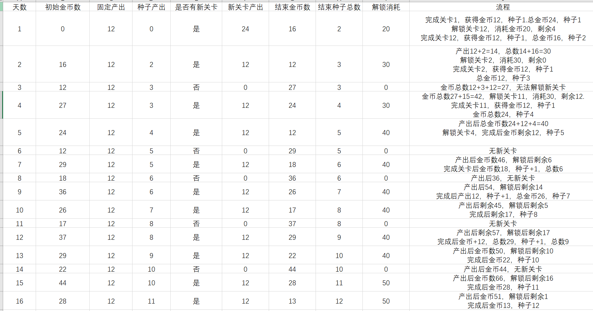 12.23更新,打关卡获得的种子可以产出金币,做Excel计算了一下零氪全解锁的最快时间。(如图)