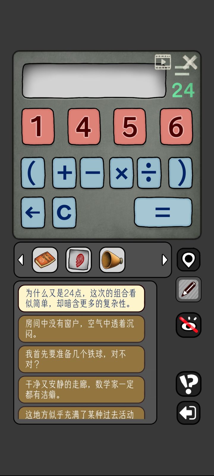 1.猫:4*9-3-9=242.左手房间758/2=379,△=3,方形=7,圆形=93.继续左走黑板ABCD*4=DCBA,ABCD=2178,获得一半的心4.继续左走,开门获得喇叭📣,这个机器人需要不同颜色的帽子5.回到猫猫房间右走,2个7的算式,可知方形可能是8或9,圆形可能是1或2,代入可知,三角是5,圆是1,方形是86.接着右走,进入灯泡房间,墙上壁画是泳池的答案,灯泡人需要电