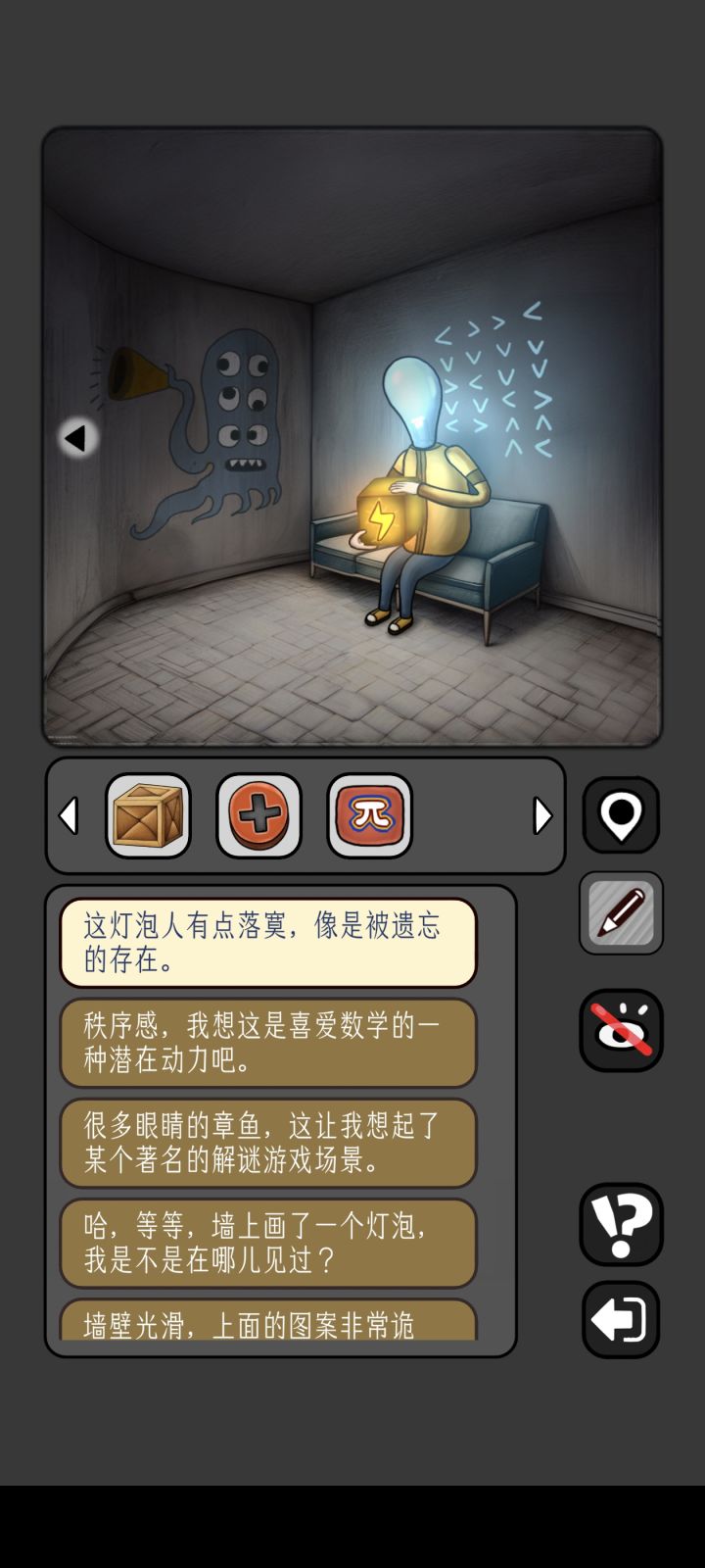 这个到底是什么意思,灯泡人墙上的符号我确实看不懂,不过应该是获取4位数字,问AI也没弄出来,网上也没对应的攻略,求解答