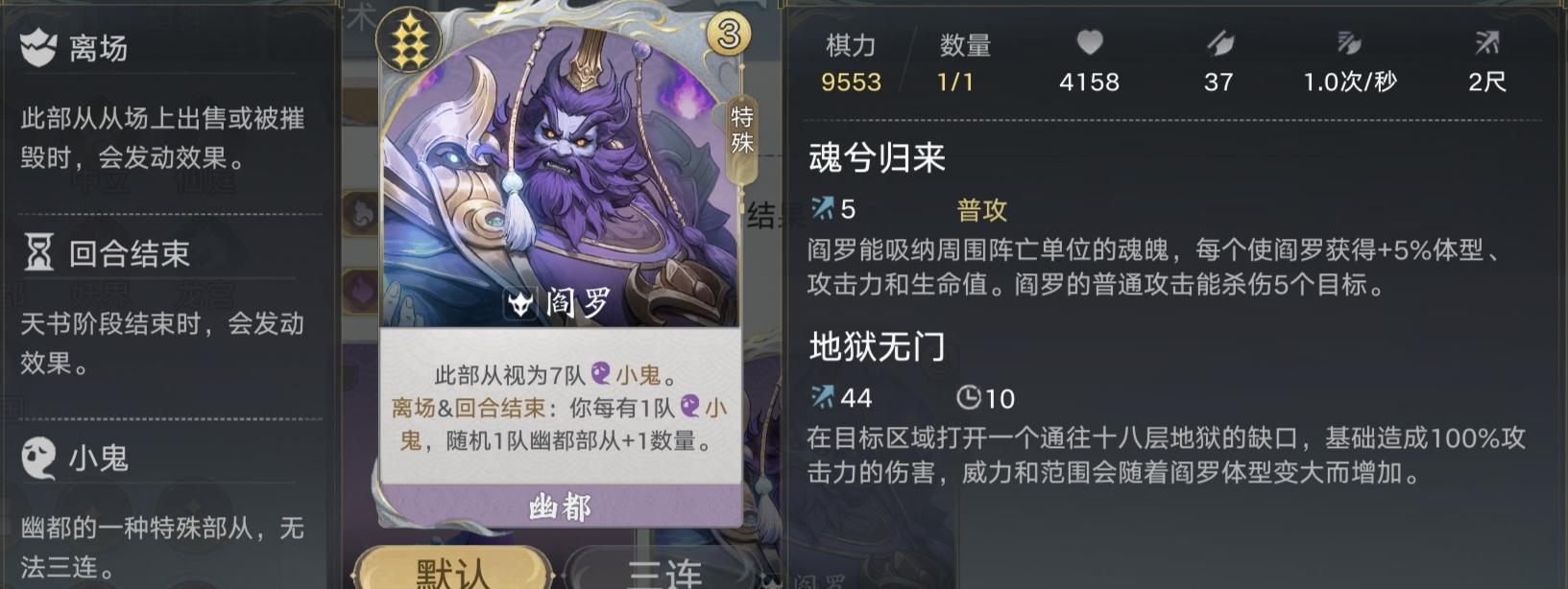 注意这局要有龙宫! 第1回合没有刷到蟹甲士(3灵石价值,不亏钱,可以稳血),就直接开技能,魍魉、恶犬(不亏钱、稳血)优先 第2回合直接升本,除非有蟹甲士,下回合升本 第3回合,直接开技能,同样经济性兵种优先,山猪、魍魉、恶犬、鲛人前锋,商店有泽精就买,但是不要刷新浪费资源 后面灵石不够1口气升到4本,就不要升到3本,重复第三回合操作,开技能选兵。 能升到4本后能升本开技能就升本开技能,不能升本就直