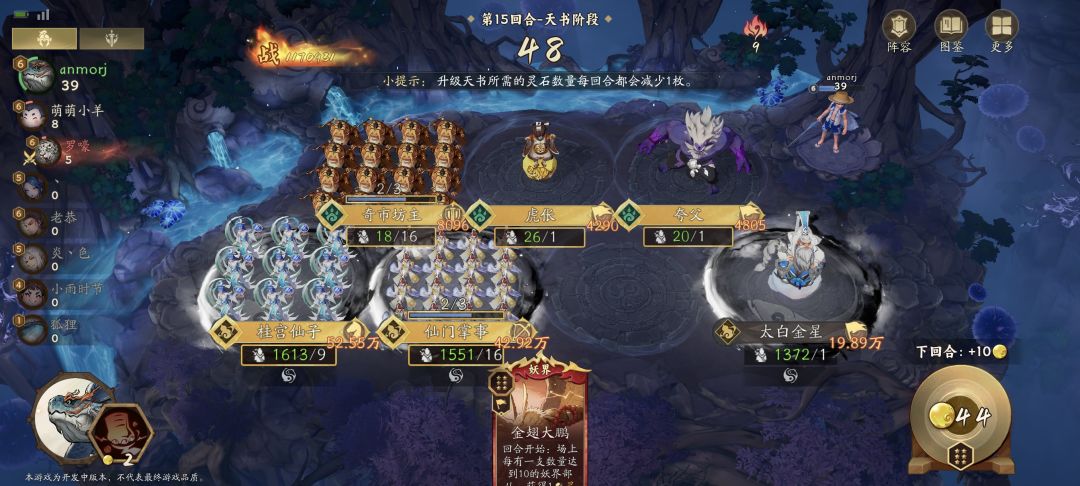 电表组成夸父+虎杖+普通蛤蟆(本局有妖族) 因为有普通蛤蟆,所以可以刷到妖族蛤蟆,配合夸父开妖族宝箱,找铮妖或者狼妖或者黄风,铮妖触发虎杖触发太白和普通蛤蟆 掌事养桂宫,太白触发掌事实现成长,不过效率上不如紫府电表,但这是通用的,你不玩仙庭可以玩别的 #代号妖鬼TapTap测试版 #代号妖鬼