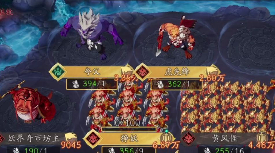 第一回合,有魍魉、蟹甲兵、蜘蛛精都可以拿,没有的话想玩极限可以不拿,第二回合看看,中庸的话恶犬可以拿 蜘蛛精的作用就是让后面妖气在5或以上就好了,保证狼妖上场就能卖,顺便稳一下血 第二回合没有想要的牌就升本 第三回合,找山猪、魍魉、泽妖,没有蜘蛛精的话,看自己的想法要不要买1个,山猪、魍魉有两个的话尽量错开回合上,多赚一点资源 后面几个回合,尽量升本 夸父,加成战吼效果。 虎先锋,战吼越多次,战吼