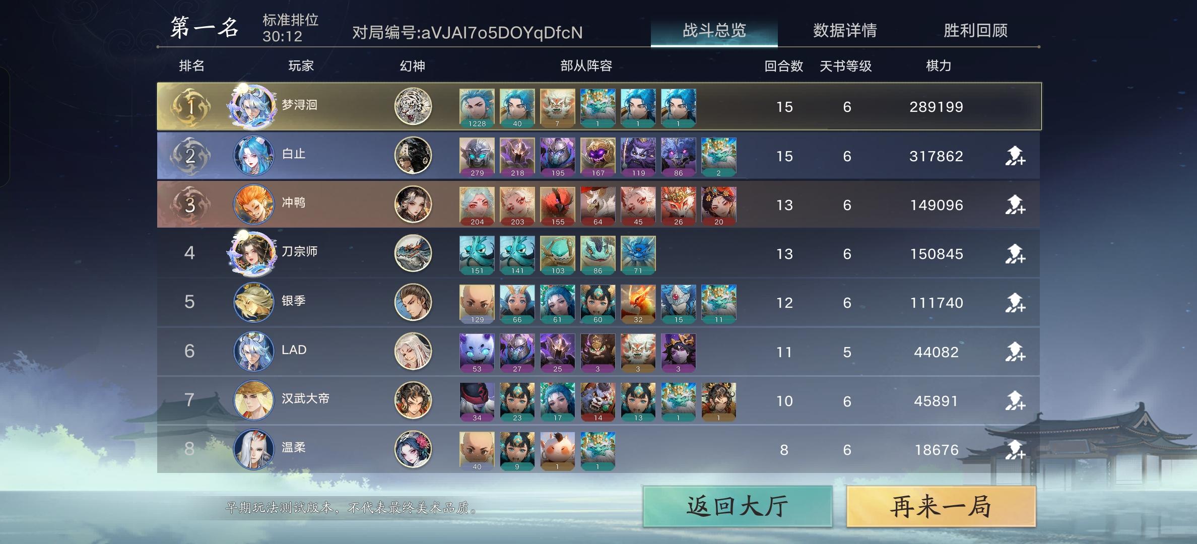 该流派充分利用龙宫珠光优势,凸出一个稳字,循序渐进,搭配一些特定的幻神也有较高的吃鸡率.基本战力10回合8万到12万,15回合到60万到100万左右,虽然上限不如一些套路,但下限非常高.战力增长曲线大概如下图,节奏非常稳健,除了前5回合战力偏低容易被入外,整体非常稳健.整体节奏分为前期后期两个阶段.前期前期已虾统手,虾枪兵,鲛人前锋,龟丞相,蛙力士,巡海夜叉,也就是前三星的龙宫牌基本都需求,主