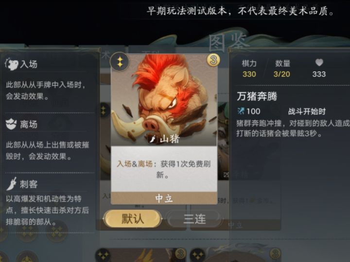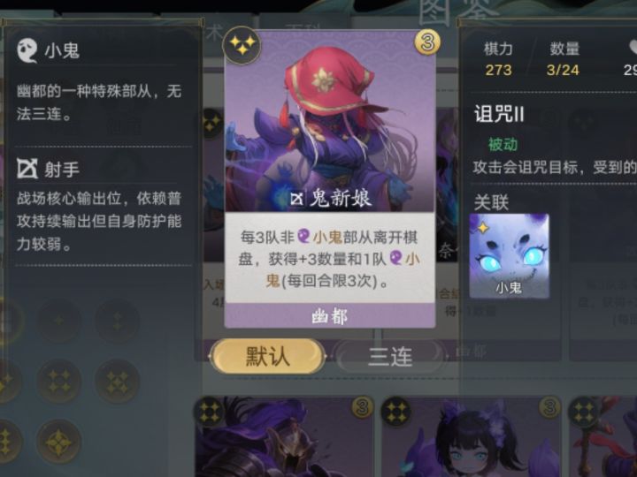 大家好,我是老K今天来讲一下,基础的机制以及各种族的特色机制。部从的类型战士兼具输出与生存能力,是攻防一体的近战多面手。射手战场核心输出位,依赖普攻持续输出但自身防护能力较弱。刺客以高爆发和机动性为特点,擅长快速击杀对方后排脆弱的部从。首领具备更强的基础属性,具有改变战局的决定性作用。通用机制入场此部从从手牌中入场时,会发动效果。回合结束天书阶段结束时,会发动效果。离