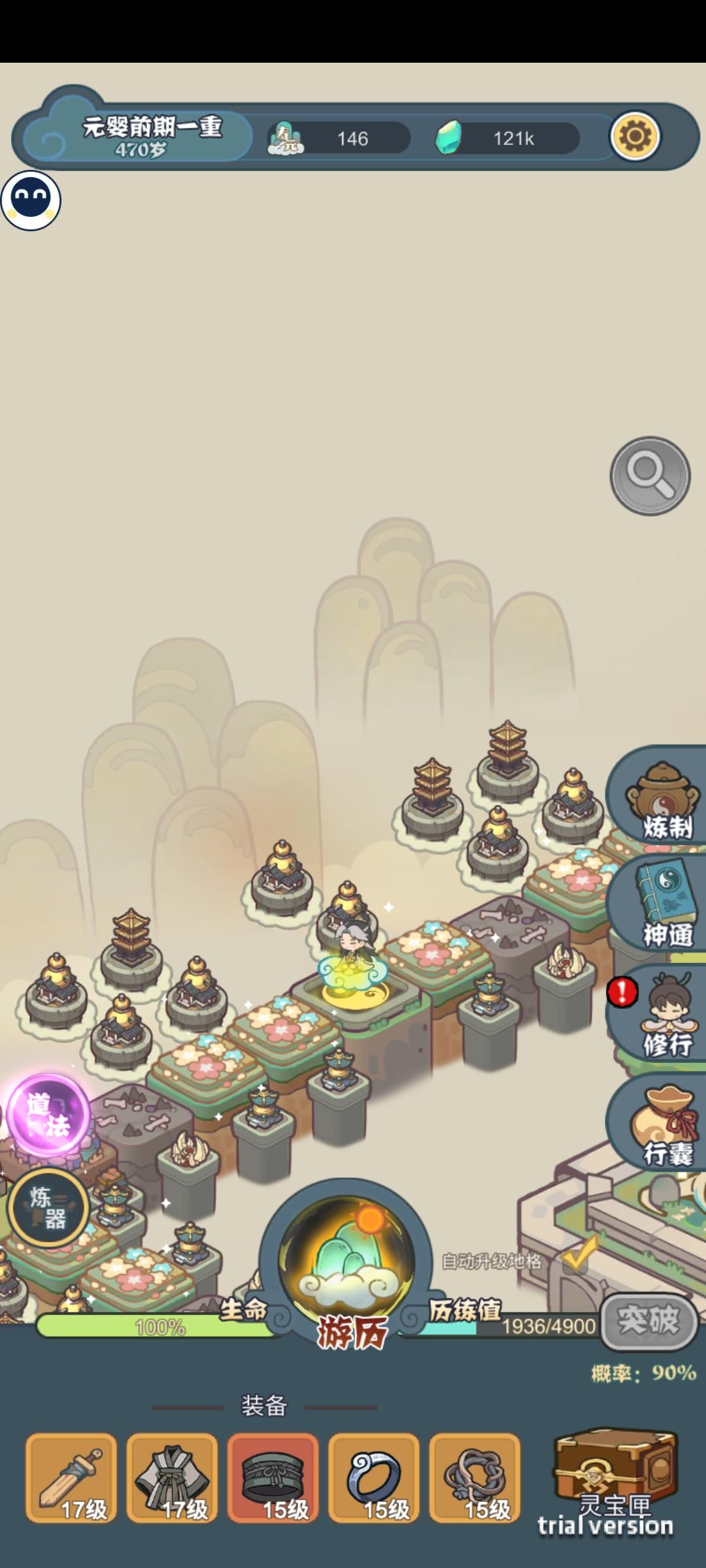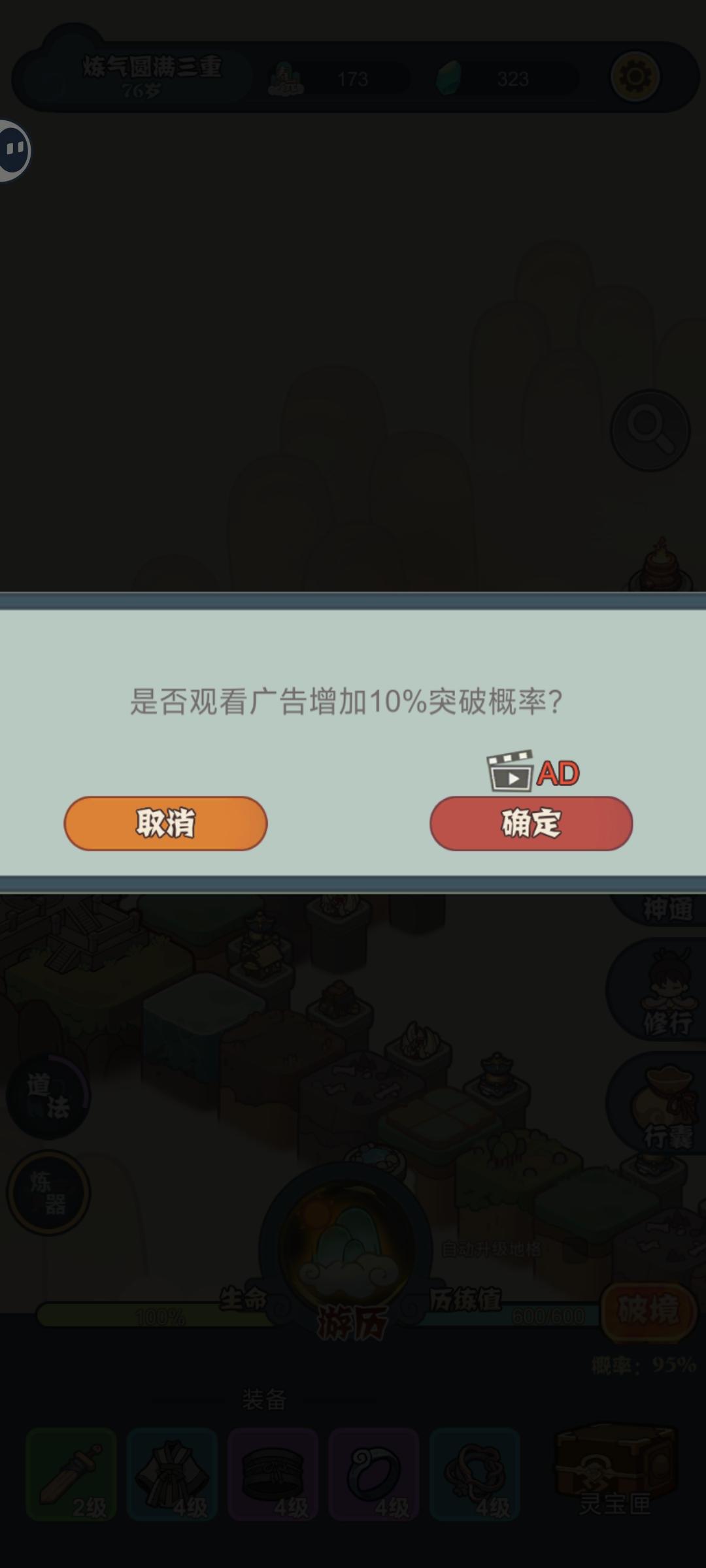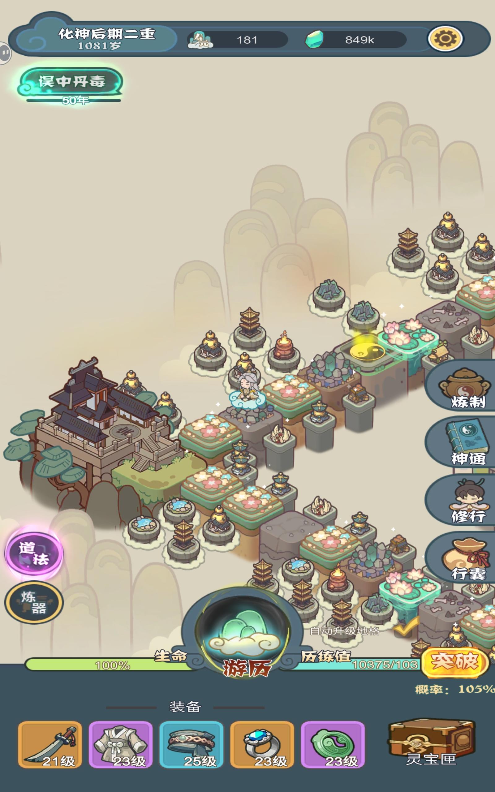 飞升足足花了七百年,把矿石丹药全炼了,后期六十多万灵石完全花不出去,地也满级了技能也毕业了只能刷材料升历练,刷一次50,一个材料200,就一直在商店刷刷刷刷了我三个小时才升仙,点得手疼