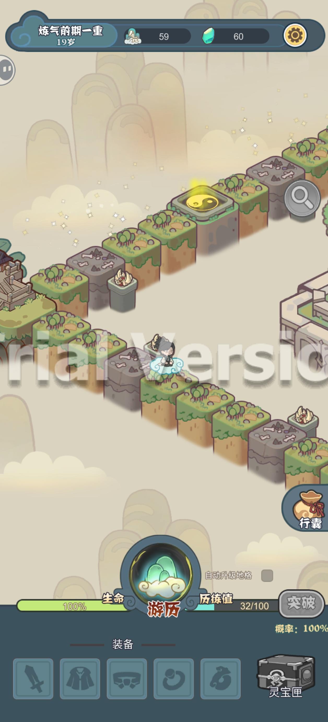元婴以后太无聊了,基本都是重复操作,建议开发商店批量买入,提高游历收益。说实话,第一个地图玩到化身前期就不想往下玩了