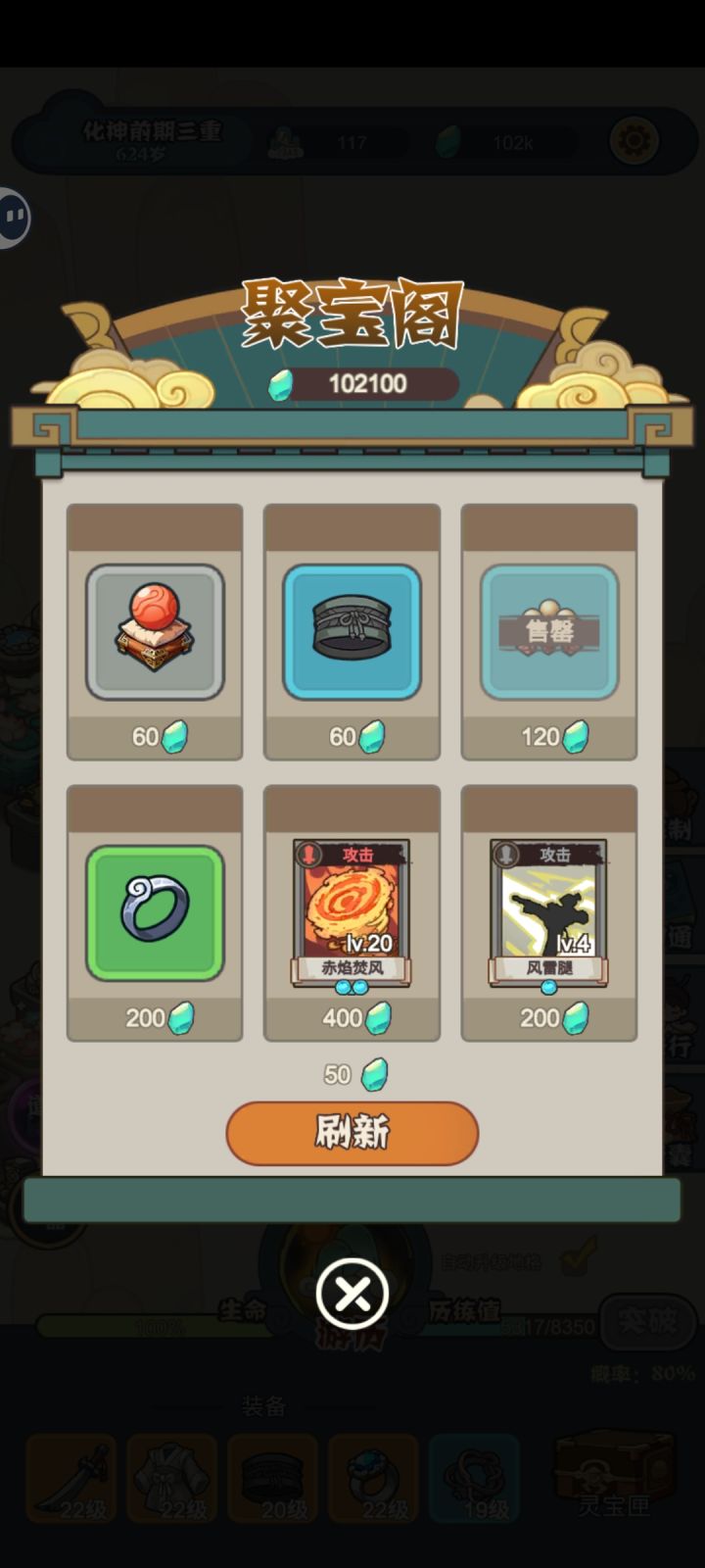 10w灵石刷商店要刷半天 后期就是无脑炼器 混经验 升级 商店买买200灵石的矿石和经验 输出就是高火 随便秒 一回合都不到 已经变成重复操作了