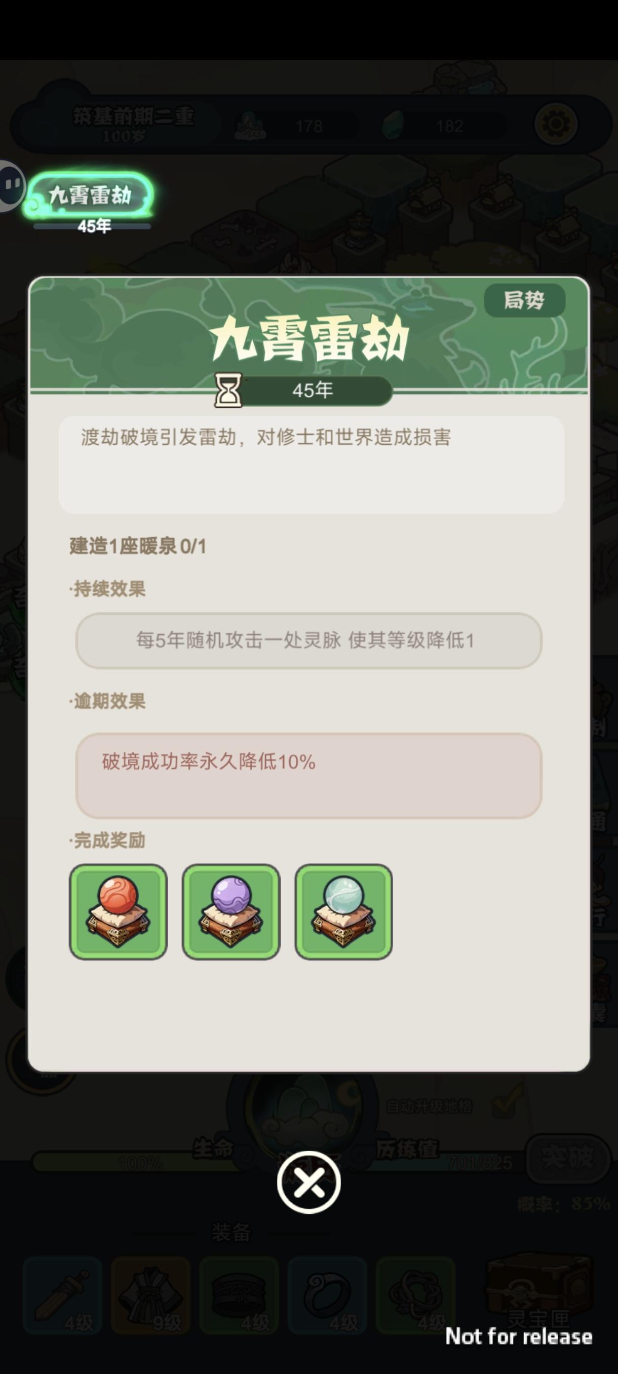 新的版本终于来了!在这个版本中,我们加入地块建造相关的微策略系统。但目的不是让玩家去过度思考策略相关选择,只是给玩家在有些许策略想法后,让玩家有一种不同的选择,仅此而已。如视频所示,当玩家踏上一块福地时,可以获得灵石奖励,并且有一次升级机会,地块在突破1级,5级,10级的时候可以选择一个附属建筑,帮助玩家获得更多收益。下面是部分灵构效果预览:初级灵构:中级灵构:高级灵构:tips:如果