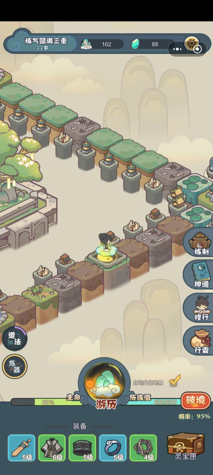 关于加点和开局:1.目前我根据个人经验以及游戏体验判断,有用的加点只有道法和炼丹(不排除官方后面加强的可能)2.开局最好刷出无字天书和清风步两个道法,无字天书点到七级之后点满清风步(有个再道法格子停的,前期可以拿一个过渡加道法,但是不要浪费道点升级,后期和无字天书清风步这套冲突)3.突破前记得加点,每个阶段每个技能有最大加点点数。4.如果你只加道法炼丹到25级满级的话,大概会有30点左右多