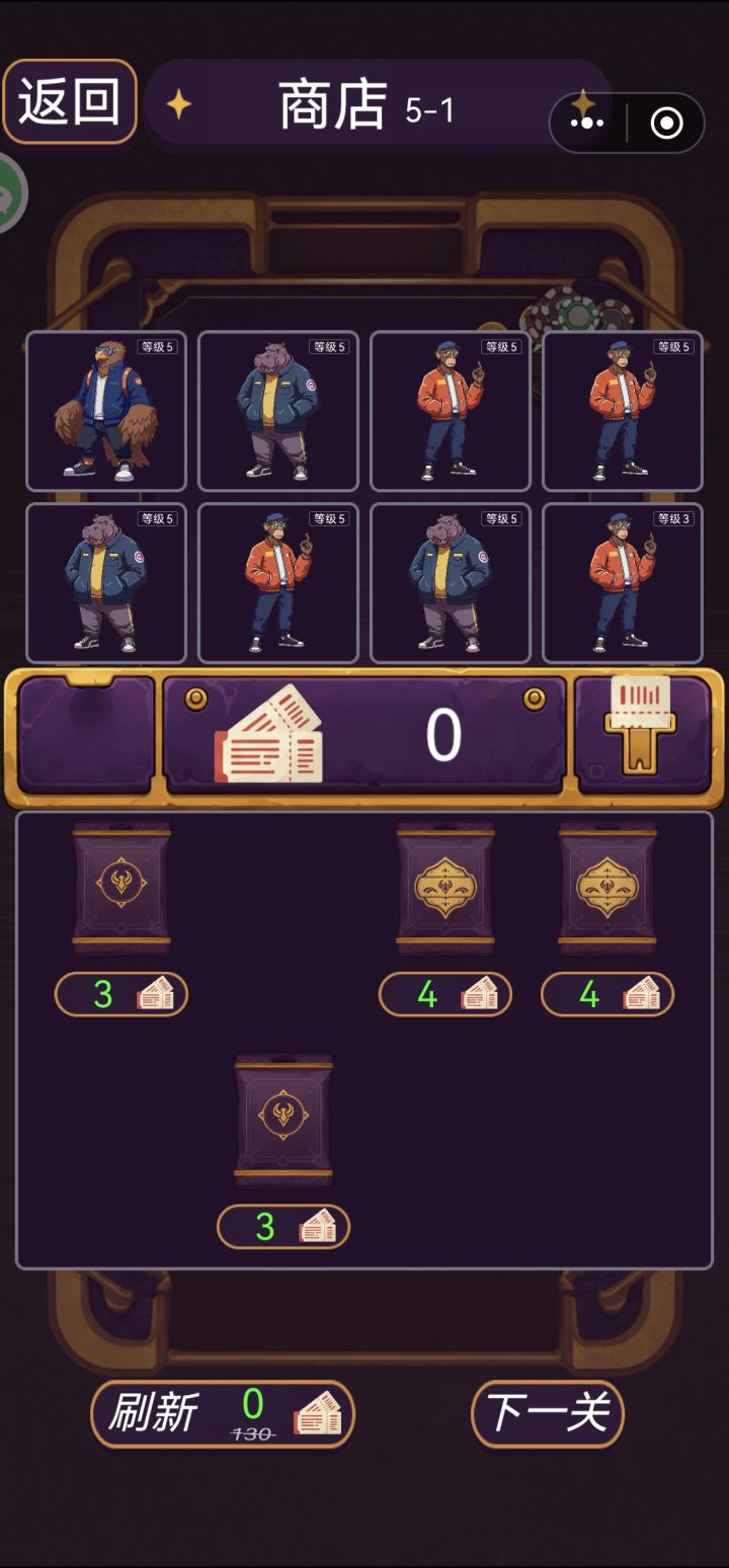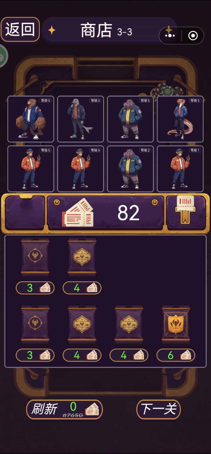 如图极速发育,快速拿满牌组成型牌组无限进化老鹰牌是关键牌越早越好,三猴四河马加速叠老鹰被动前期过渡牌组选加分能力牌保证可以过关就行了可以不加满,免费刷新商店和半价购买这两张牌是关键牌加满级(买牌然后卖掉可以实现无限刷牌流,在早期拿到强大牌组)算上老鹰牌四张牌剩下四个位置可以开始选猴子河马牌,基本几个回合牌组就可以满级,如果运营的好甚至可以做到一回合满级(因为商店刷新比半价购买消耗慢,所以建议只