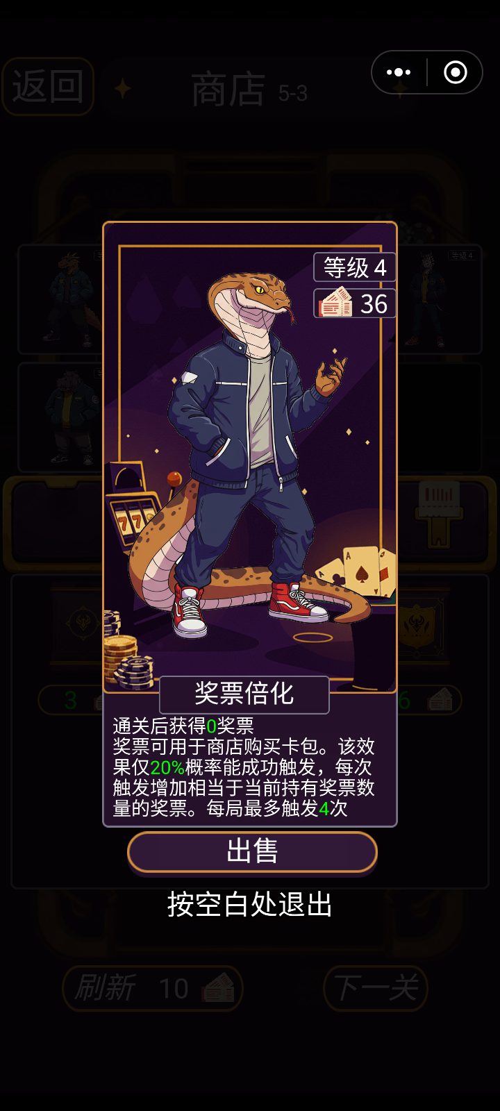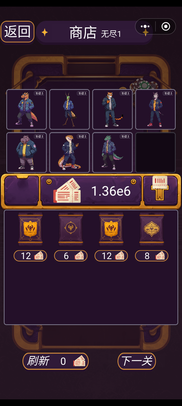 这几个前期用无敌,后期把奖券人物换成每回合保留分数,能一直玩#推币奇物阁
