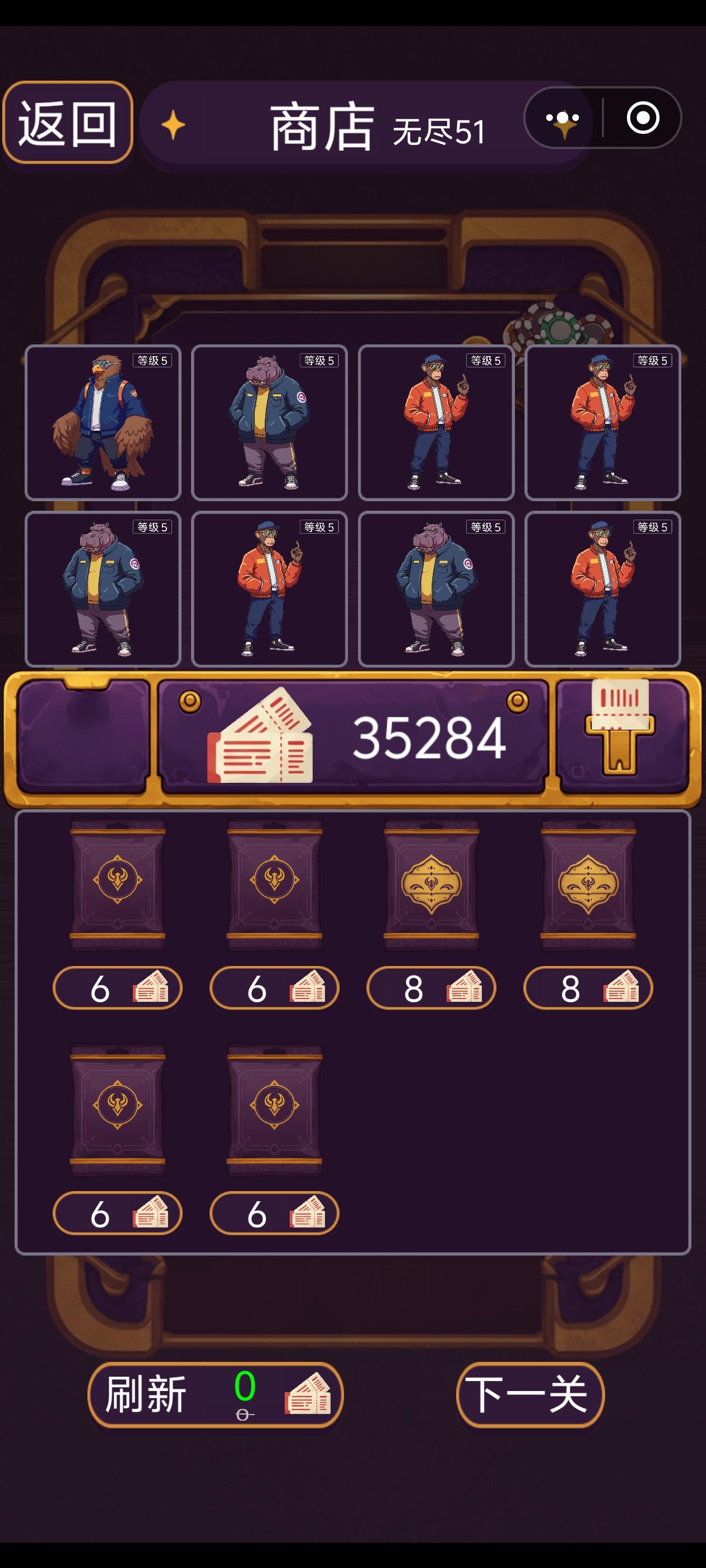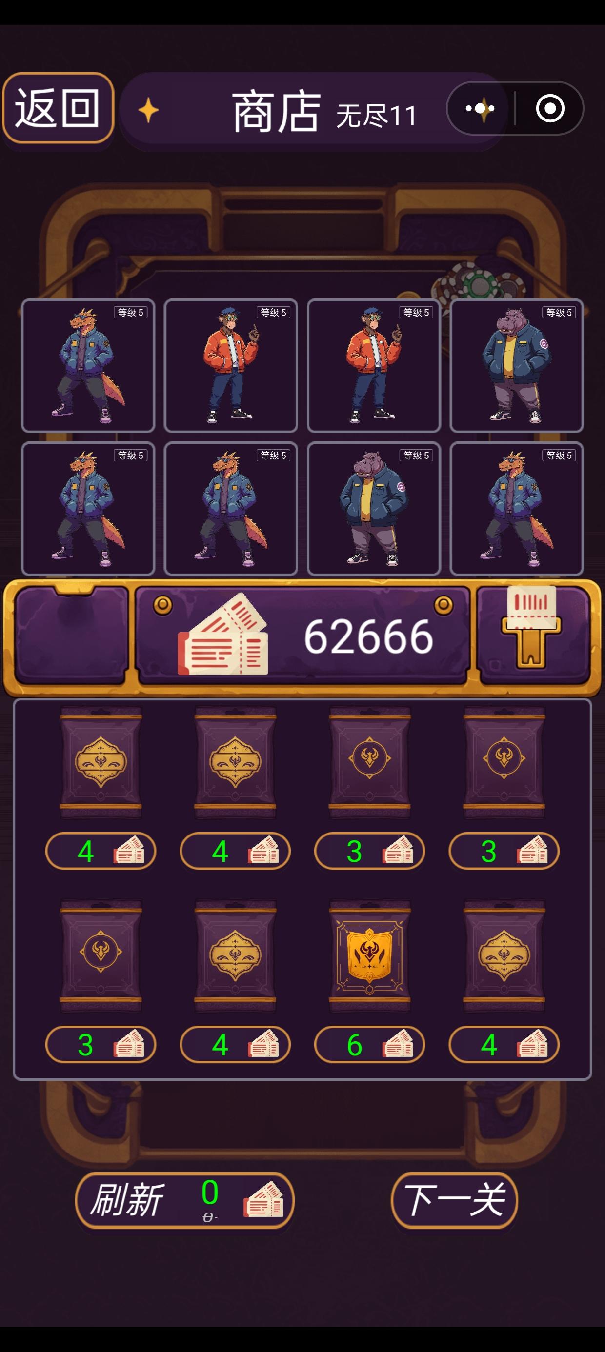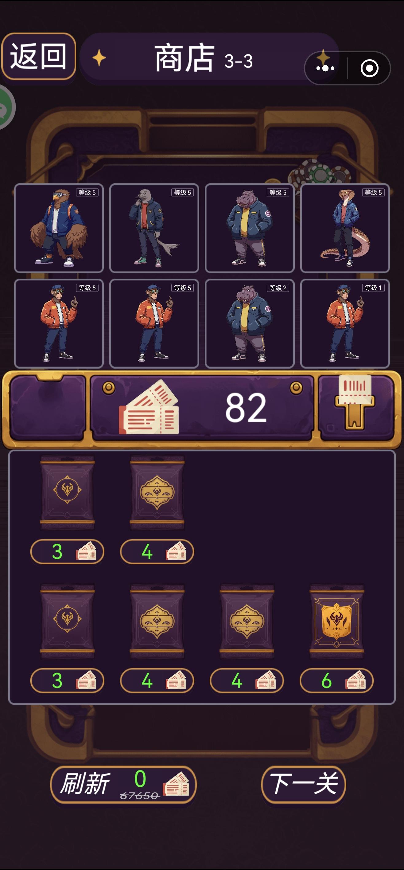 如图极速发育,快速拿满牌组成型牌组无限进化老鹰牌是关键牌越早越好,三猴四河马加速叠老鹰被动前期过渡牌组选加分能力牌保证可以过关就行了可以不加满,免费刷新商店和半价购买这两张牌是关键牌加满级(买牌然后卖掉可以实现无限刷牌流,在早期拿到强大牌组)算上老鹰牌四张牌剩下四个位置可以开始选猴子河马牌,基本几个回合牌组就可以满级,如果运营的好甚至可以做到一回合满级(因为商店刷新比半价购买消耗慢,所以建议只