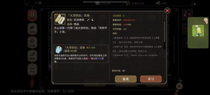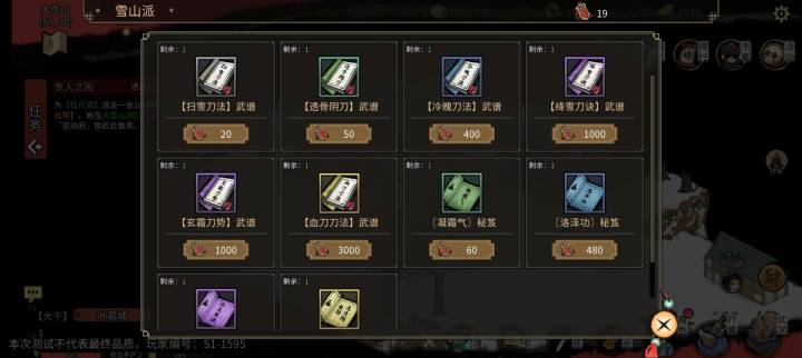 我是第二次测试了2025.11.15——2025.11.28结束,这一次的测试内容主要添加了自创武学,主线任务,帮会,生活技能等玩法,不是很多,有很多没有实装首先,这个游戏,它不是烟雨那种回合制的游戏,而是实时放技能的那种游戏,也可以说是肉鸽游戏,喜欢玩回合制的玩家们,萌新们,要注意啦!避免入坑。自创武学,这个武学分为,黄品,玄品,地品,天品,绝品,传世等,需要大量的造诣和修为来自创武学。目