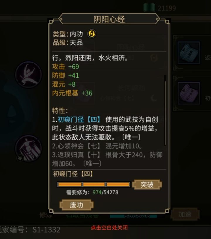 游戏试玩马上结束,有些遗憾,因为刚刚摸索出一些自己的玩法。但是也能理解。自己玩了几天,所有东西基本算靠自己摸索,例如没有小地图,全凭感觉,开始有些不习惯,后面我跑完了所有地图,现在没有小地图几乎没有任何影响。自己探索地图每个角落的过程就是一种享受。每当自己发现新大陆,别提心里多高兴😀😀😀😀游戏虽然不到三成内容,但是已经足够吸引像我这样的八零后武侠迷啦!如果认真体验游戏,你会发现神经是真心做游戏了!