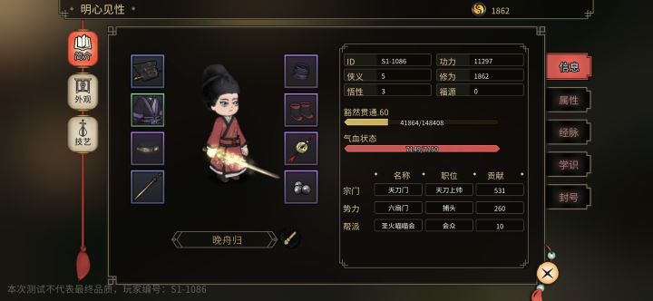 感谢制作组、感谢神经虾大佬给我内测的一个资格。短短的两周测试期间内我也是自己努力刷到了60级。总体来说还是玩的比较舒服的。在下不才,也算个武侠游戏爱好者,汉家江湖也玩了3000多小时。下面的话就简单和诸君汇报我这个内测期间的一个感受吧。 首先它是一款什么样的游戏?他还是一个高度自由的一个武侠类的一个游戏,就是他的设定是比较架空的,会有一些历史人物,比如说会有明朝皇帝战神朱祁镇,也有很多金老爷子笔