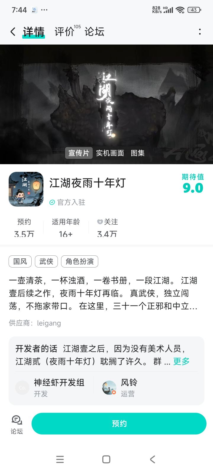 江湖夜雨十年灯丨新游预约