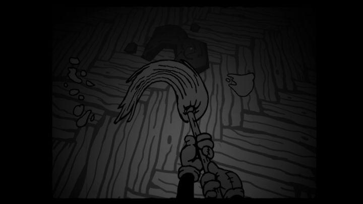 不过在游戏中有一个互动环节,当你开始游戏后,逛个6分钟左右,会接到新的任务,帮鼠宝他爸拿药瓶,他爸需要这些药剂来保持平静,而如何获得这瓶药呢?答案是做家务,其实这就有一点无聊了,因为在这个家务的过程中就单纯去找到拖把,拿着拖把把地面清扫感觉,没了。整个过程差不多持续快一分钟,期间我一会会有一些其他的内容,比如没啥技术含量,但是立竿见影的“跳脸”,不过并没有,有的至少亮度偏低,我不太好找到脏东西并用拖把将其清洗而已。