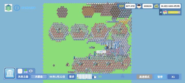 靠近水的建筑提升50%地价,非常重要。前期靠发电风车卖电赚钱是万能打法,粮跟鱼只用管住不影响贸易量就行。地块构建长度为6的六边形布局。中期开始居民区按照需求度中间7地块放置警,消防,医院,小学,中学,车站,公园,高财富在周边布局大学。后期高密度跟超高密度的商业,办公对附近地块有地价加成,所以六边形的居民区跟商业区办公区挨着放。熟悉大概套路,不管简单还是困难模式,玩起来都一样了。