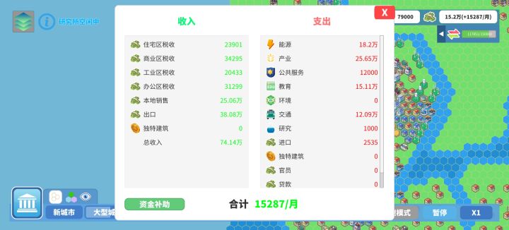 现在每个月只赚一万多,钱根本不够,GDP和地价也上不去,因为之前的档我把建筑都摆一起,最后交通不够居民好感度上不去没法升级,这个档我把所有建筑都分开放,是这个原因吗感觉经济增长速度慢很多,现在财政危机了但是不知道还能怎么节流,求大佬指点