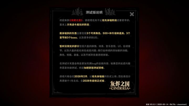 那是属于黑暗童话的专属旋律,在《灰烬之国》这款游戏中,城堡火焰血色天空是我最初看到的,耳边的旋律随着黑暗笼罩大地,身披红色斗篷有着猫耳的主人公出现在我的眼前。魔女燃烧世界,王国化为焦土,只余灰烬在废墟中飘落我从下水道爬出,看着游荡着的敌人,正式开始了这场,比抢先体验阶段还要更早甚至在官方试玩提示中,只有战斗能玩的游戏阶段。《灰烬之国 Cinderia》是一款黑暗童话风的Roguelike动作游戏