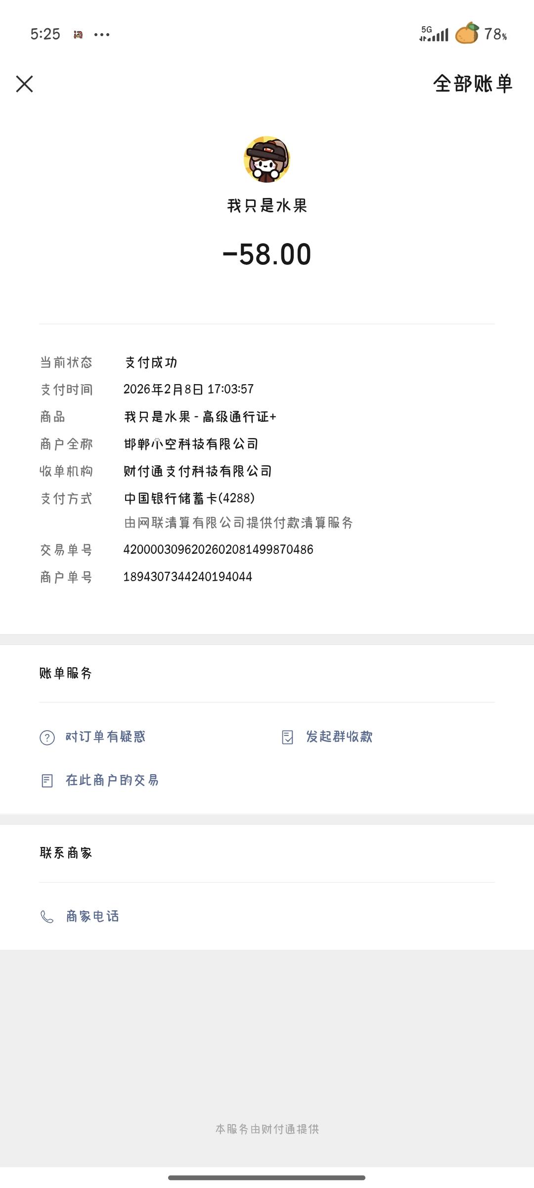 扣了两个 58 元没给通行证