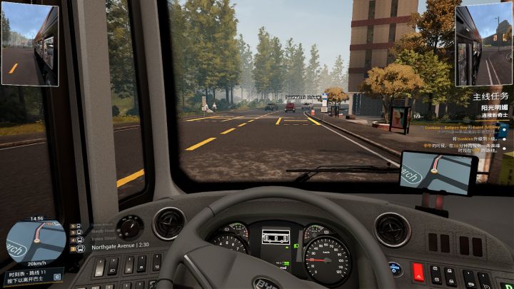 当我们开始公交驾驶时,我们要在设置好的路线从首发站开到终点站,从点火到打开灯解锁制动,从停靠或继续行驶时拨动转向灯到时刻观察路况和十字路口的红绿灯,以及最重要的载客环节,游戏过程满满的都是细节。