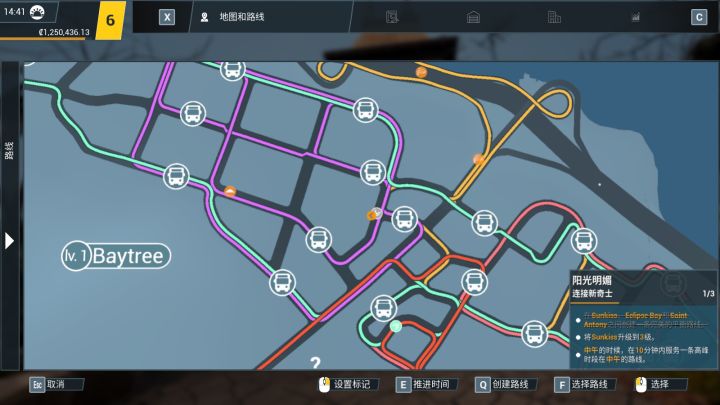 游戏有着四种游玩模式,从易到难,根据自己对这类游戏的熟悉程度和对于“硬核”的接受程度,玩家可以选择喜欢的模式来体验游戏。游戏主要目的就是解锁不同地区的巴士路线,利用各个站点不同时间的客流量来分配合理的路线,升级各个站点和地区的等级,从而提高赚钱的效率,继而解锁购买更多种类车辆,周而复始。