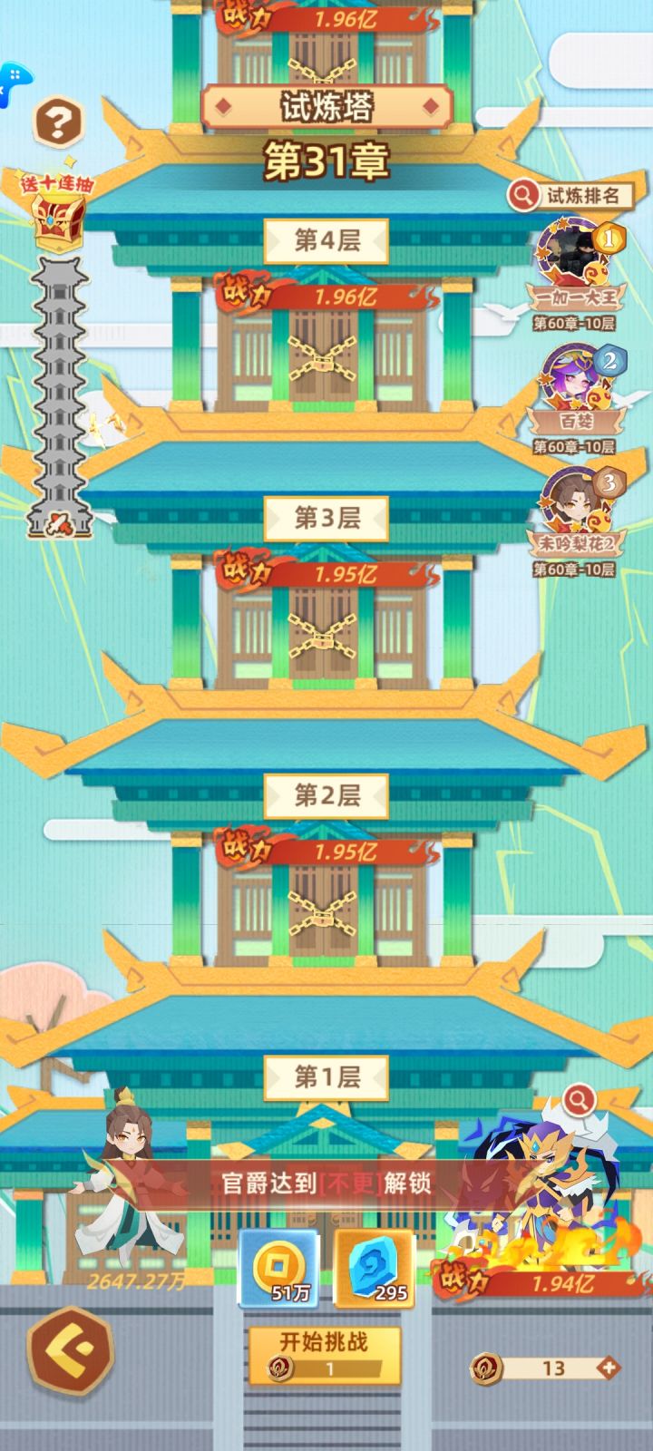 0氪,冲塔还需要官爵大小的限制?这就有点悲剧了。。。没冲连塔都难刷了么?希望能改进