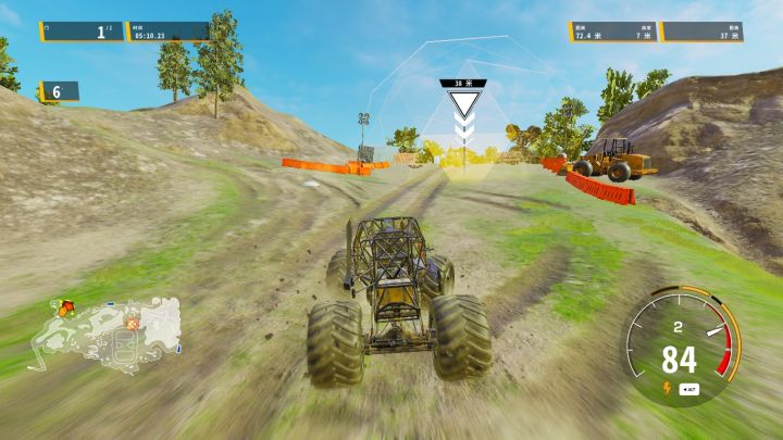这款游戏支持简体中文的UI显示,新手引导里还有质量极高的普通话配音讲解,这些都有助于玩家快速进入状态,了解这项运动并领略其魅力——绝对力量所带来的强烈视觉冲击,以及力量背后各种令人眼花缭乱的花式技巧。“怪物卡车”的轮子太过巨大,大得不成比例,底盘非常高,所以这种赛车的稳定性很差,而这种稳定性差的特点恰恰是其花式技巧的来源。