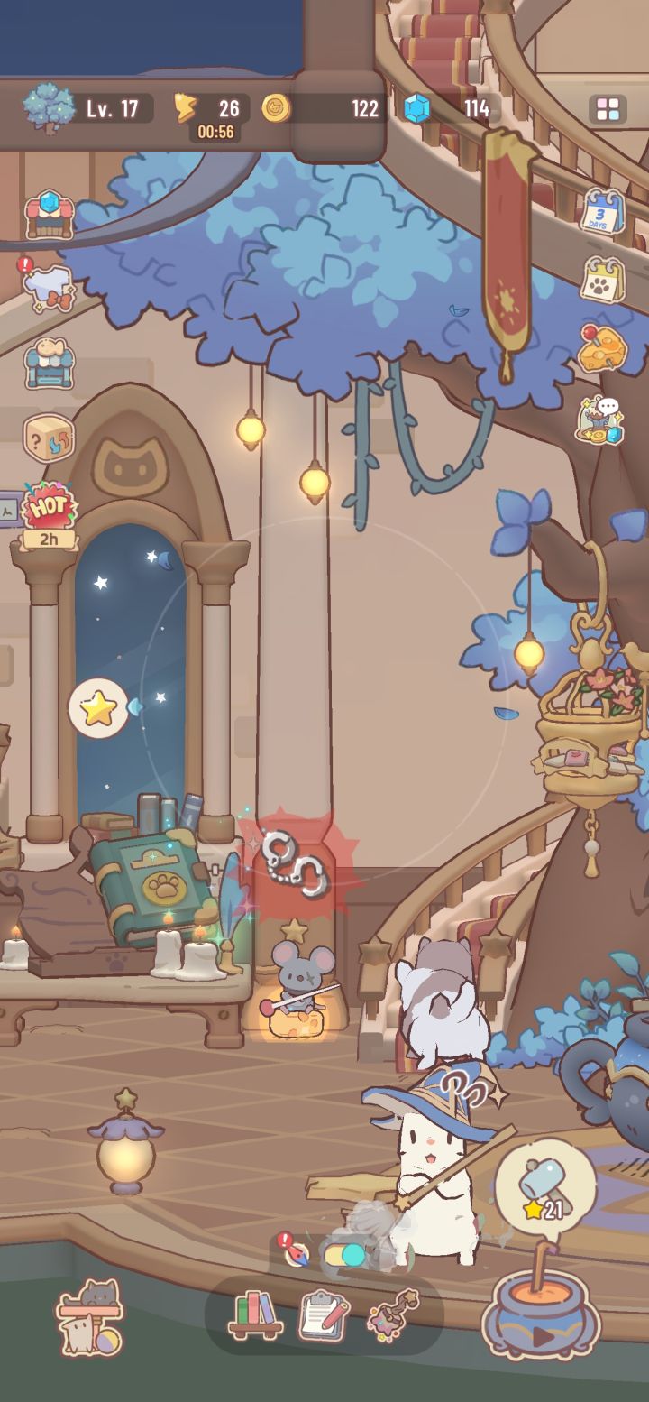 后面越来越难升了,这游戏当个休闲游戏还不错,但是要是论游戏性,我只能说没什么游戏性,与猫之间暂时没有发现有什么互动,就是看自己的猫在屏幕里跳来跳去,画面很温馨,小游戏还挺友好,失败了不限次数,可以再次挑战。我认为现阶段一个是体力少,二是体力上限,还有合成随机性太大。体力除了宝石买,每天签到什么的,别的就是花钱买。体力上限最让人诟病,体力上限每天就100,不管恢复多久就是100,然后多余的体力好像是