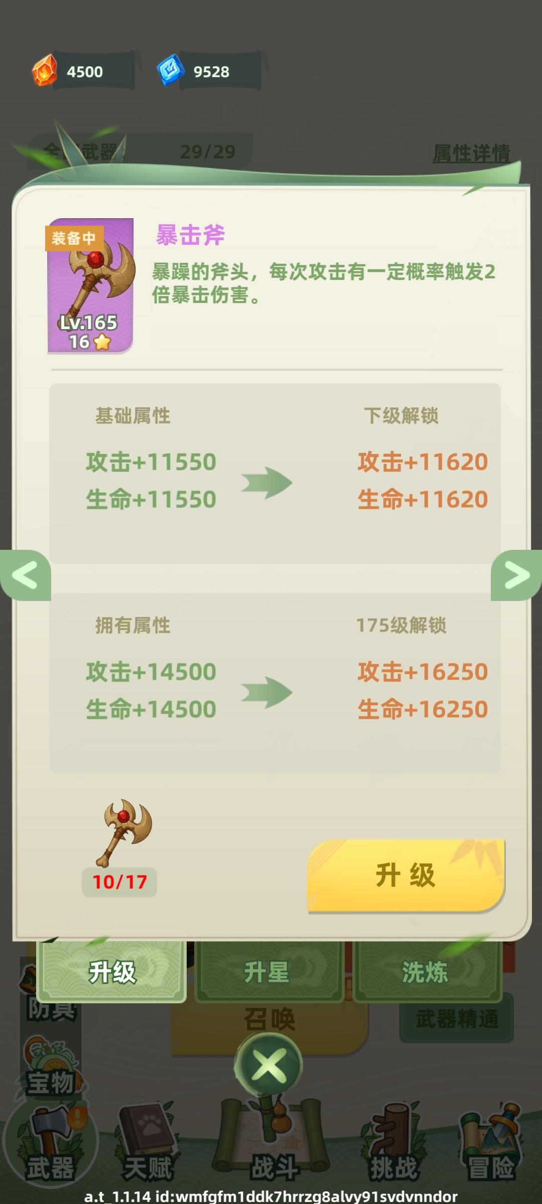 暴击斧16级以后刷了1万多卷,购买了几十次只从9个增长到10个,数据有问题