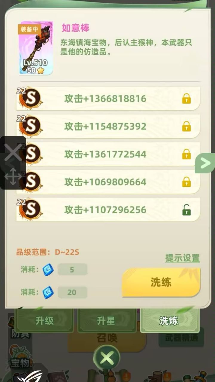 四个道祖都通关,四个徽章即可留名名人堂。有20个万关邀请码25转左右天赋可满。没有万关邀请码,先把天赋转满。极速攻略:停止转生后,灵石留200万,全部购买召唤石。差不多5000万左右召唤石可以把金箍棒升到50星。召唤石一直召唤武器,前面绿色紫色数量够36350(50星满星的数量)不会再出,类似天赋。前面8个满36350,可以指定召唤金箍棒。关卡不到30万前,可以先用18星斧头过度。