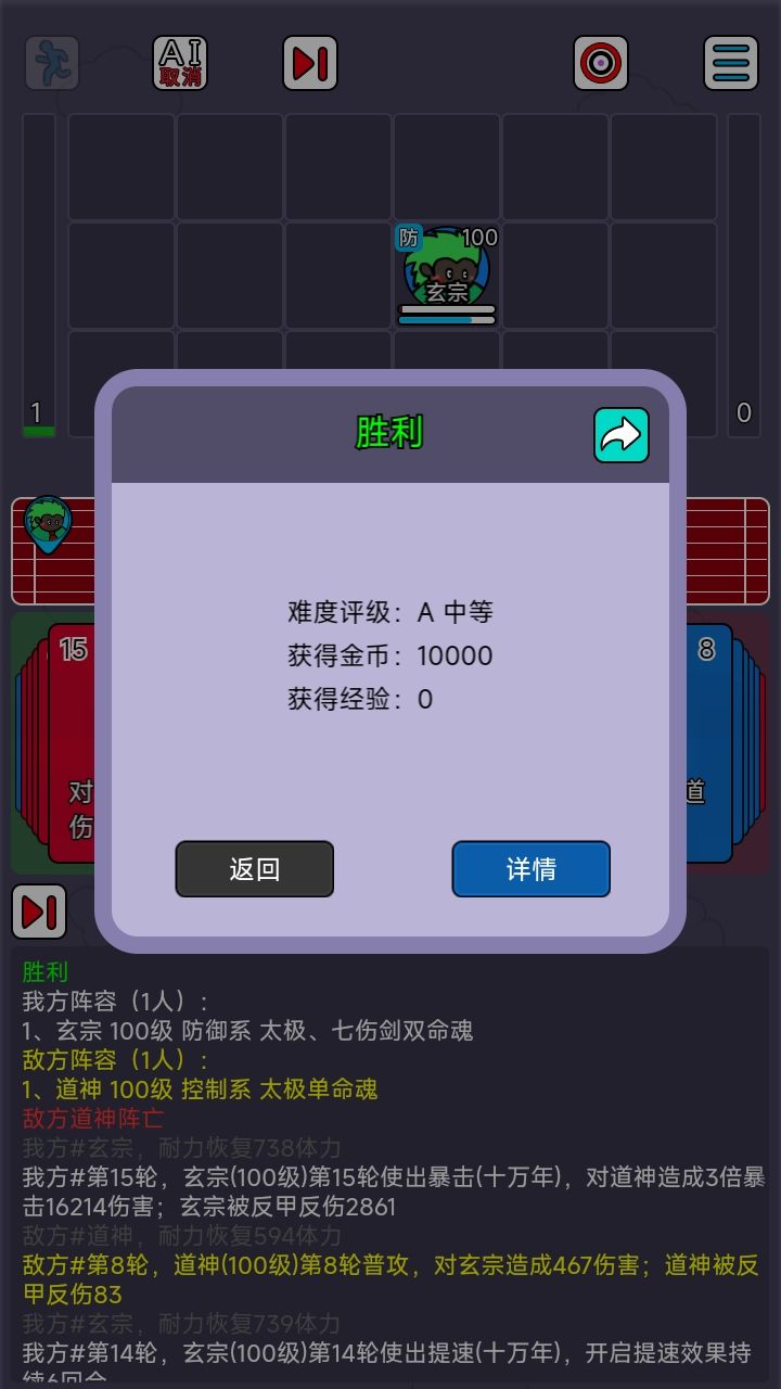 闯关阵容(1人 15回合): 1、玄宗 100级 防御系 太极、七伤剑双命魂 守关阵容(1人 8回合): 1、道神 100级 控制系 太极单命魂 #斗神大陆2