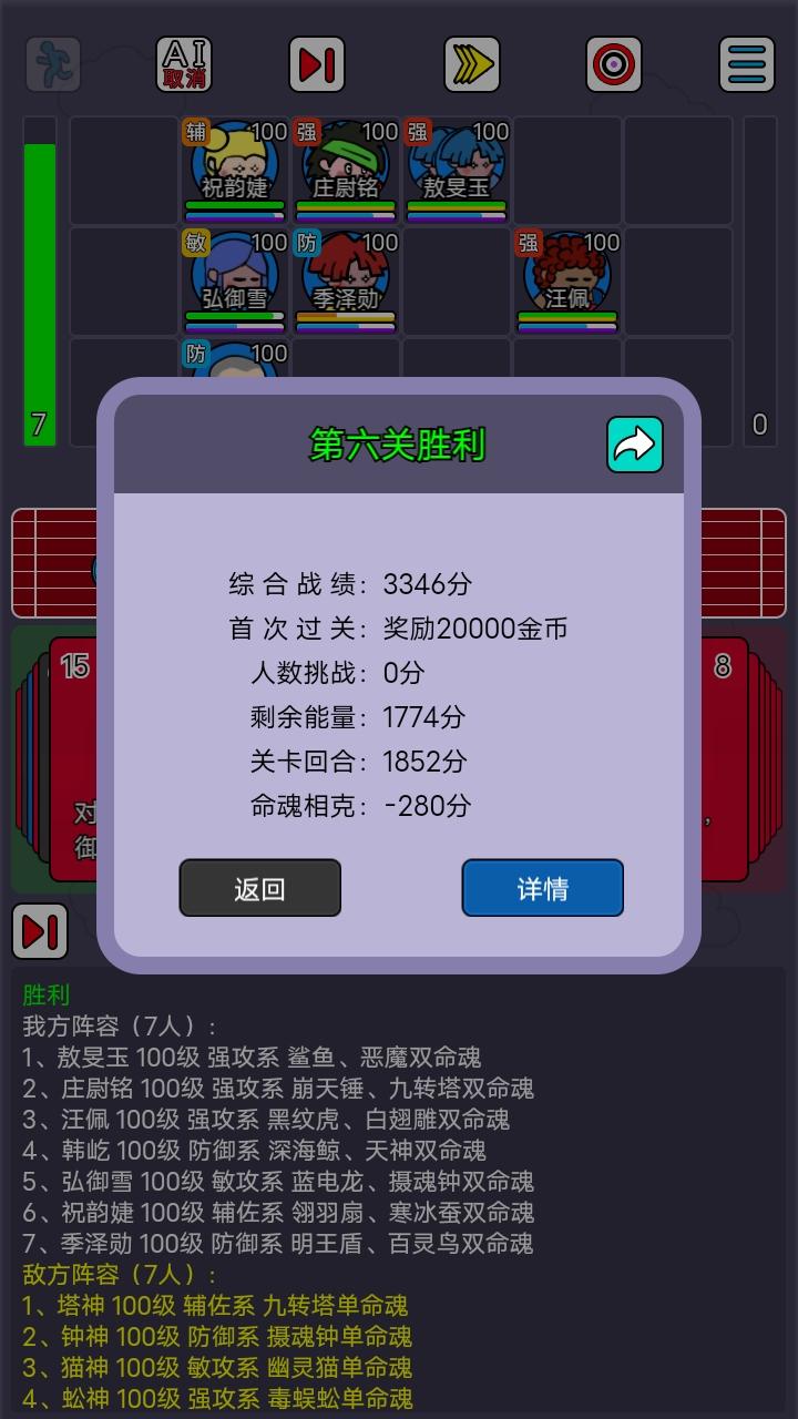 闯关阵容(1人 7回合): 1、帝 100级 控制系 白翅雕、寒冰蚕双命魂 守关阵容(1人 3回合): 1、死神 100级 强攻系 骷髅单命魂 #斗神大陆2