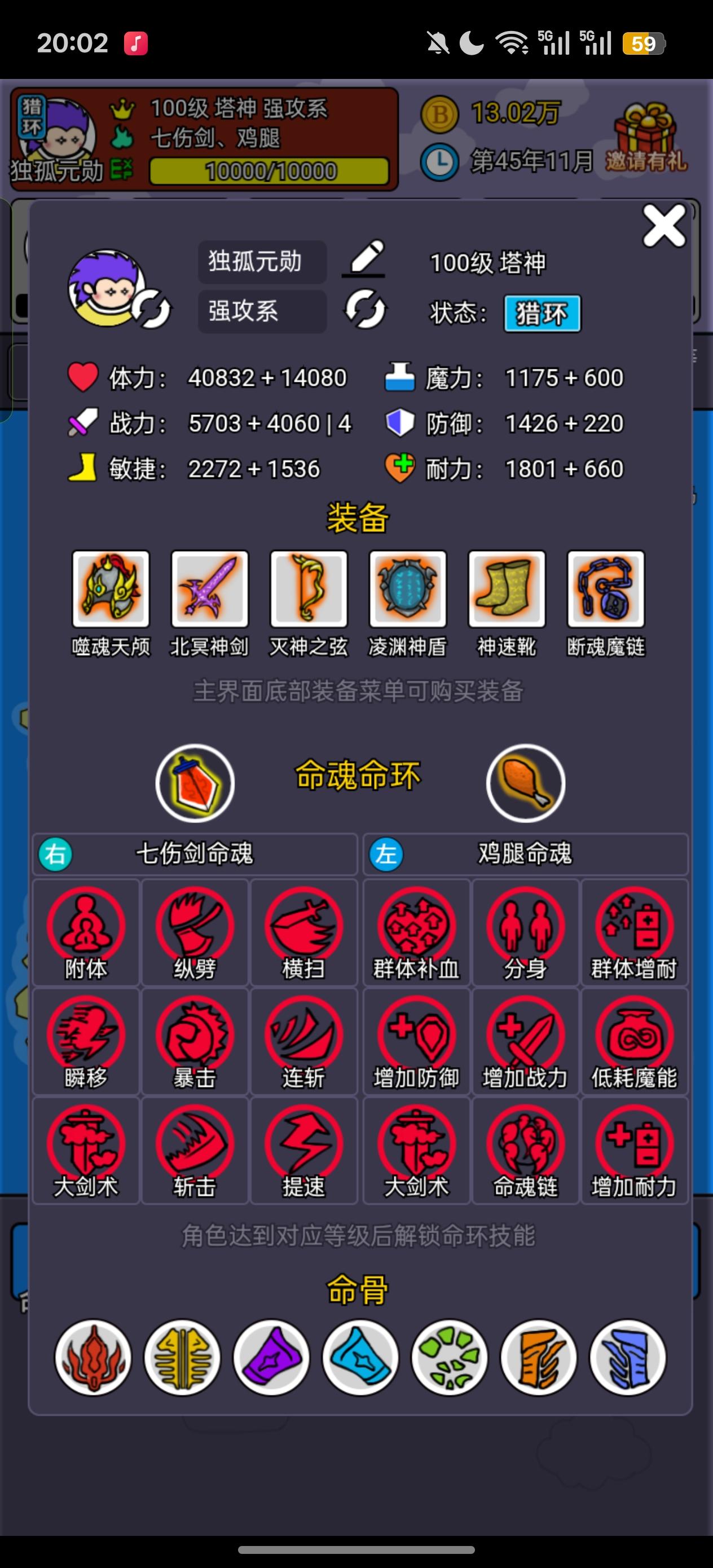 综 合 战 绩:4014分获 得 金 币:400 人数挑战:600分 剩余能量:1922分 关卡回合:1492分 命魂相克:0分闯关阵容(1人 4回合):1、万法 100级 强攻系 火凤凰、摄魂钟双命魂怎么配呀?守关阵容(2人 3回合):1、猿神 100级 强攻系 巨臂猿单命魂2、菇神 100级 辅佐系 蘑菇单命魂#斗神大陆2