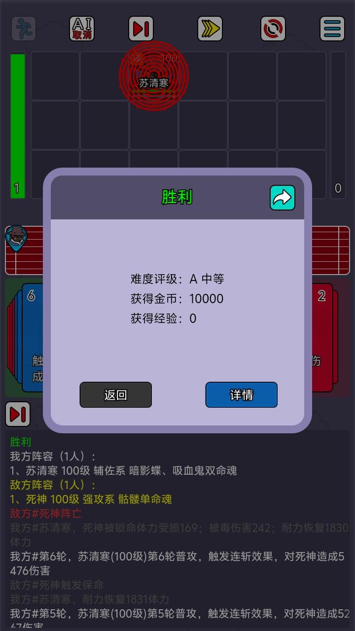 #斗神大陆2 综 合 战 绩:3531分获 得 金 币:1400 人数挑战:0分 剩余能量:1119分 关卡回合:2202分 命魂相克:210分闯关阵容(7人 99回合):1、无归 100级 敏攻系 七伤剑、鸡腿双命魂2、弘御雪 100级 敏攻系 蓝电龙、摄魂钟双命魂3、祝韵婕 100级 辅佐系 翎羽扇、寒冰蚕双命魂4、欧时彦 100级 强攻系 盘龙棍、开山斧双命魂5、计缜