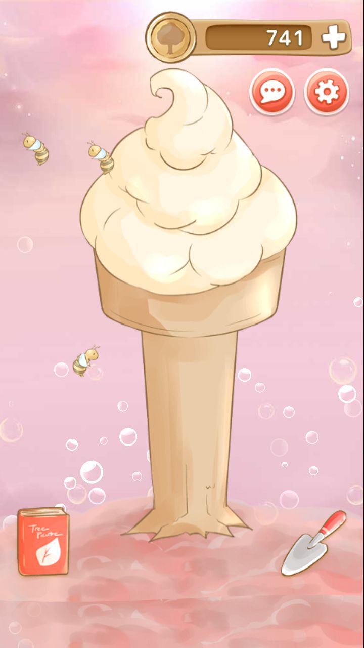 是冰淇淋😂😂,现在还有人玩吗?晒出你们的树吧!这游戏挺小清新的,无聊的时候可以玩一下。而且是有配方的。右下角的那本书, 如图第一个就是配方的记录,就是喂的肥料记录。😭😭感觉手特别累,那些昆虫是加金币的,水是自动加。