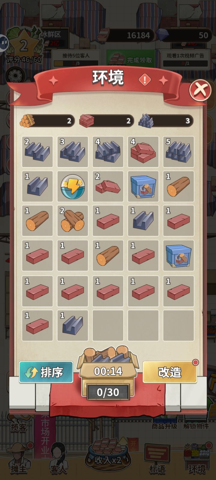 摊主养成需要消耗钻石,直接增加摊位收益百分比,钻石产出相对有限,资源有投入倾向,不够可以选择看广告。